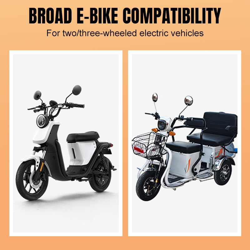Compatible con la mayoría de vehículos eléctricos de dos y tres ruedas - tanto con baterías de plomo-ácido como de litio. ¡La solución de carga perfecta para bicicletas eléctricas, scooters y más! 🚴♂️🛵